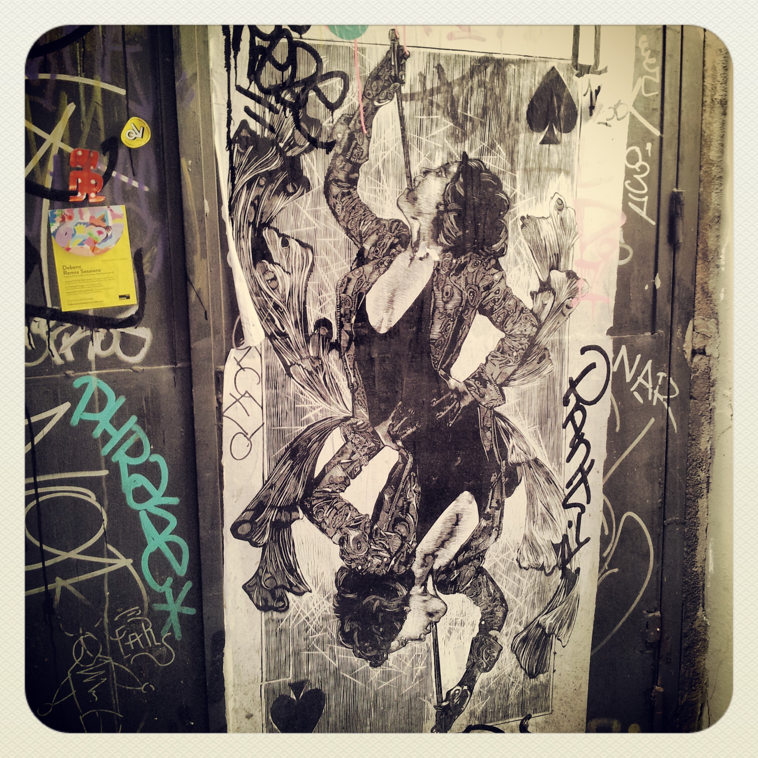 So, I’m left as a voyeur on the street art of others. I like the secret pictures and I like the mysterious people that flit in the night, spicing up the streets with quirky images. Their work waves at me as I pass the streets, from time-to-time, and I smile thinking, “Well, hello there piece of art!” Like it’s a secret discovery, belonging to just me and the street.